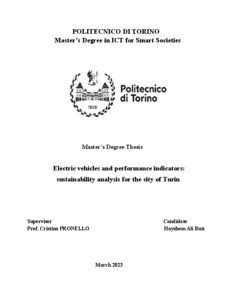 Electric vehicles and performance indicators: sustainability analysis for the city of Turin = Electric vehicles and performance indicators: sustainability analysis for the city of Turin.