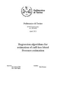 Regression algorithms for estimation of cuffless blood pressure estimation.