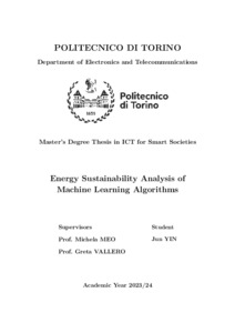 Energy sustainability analysis of machine learning algorithms.