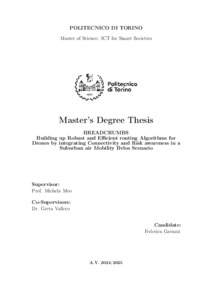 BREADCRUMBS: Building up Robust and Efficient routing Algorithms for Drones by integrating Connectivity and Risk awareness in a Suburban air Mobility Bvlos Scenario.