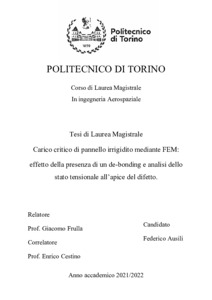 Carico critico di pannello irrigidito mediante FEM: effetto della presenza di un de-bonding e analisi dello stato tensionale all’apice del difetto = Critical load of a stiffened panel by FEM: effect of the presence of a debonding and analysis of the tensional status at the apex of the defect.