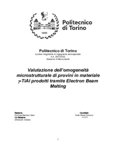 Rel. Eleonora Atzeni, Sara Biamino, Alessandro Zenatti, Luca Brasili. Politecnico di Torino, Corso di laurea magistrale in Ingegneria Aerospaziale, 2022
