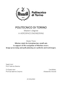 Mission study for interplanetary small-sats in support of the navigation of Martian rovers. Image processing and path planning on synthetic and real images.