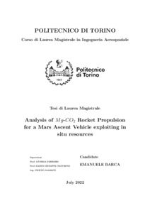 Analysis of Mg-CO2 Rocket Propulsion for a Mars Ascent Vehicle exploiting in situ resources.