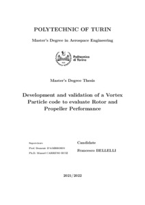 Development and validation of a Vortex Particle code to evaluate Rotor and Propeller Performance.