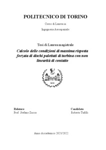 Calcolo delle condizioni di massima risposta forzata di dischi palettati di turbina con non linearità di contatto = Calculation of the conditions of maximum forced response of turbine's bladed disks with contact nonlinearity.