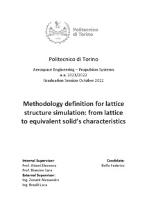 Methodology definition for lattice structure simulation: from lattice to equivalent solid’s characteristics.