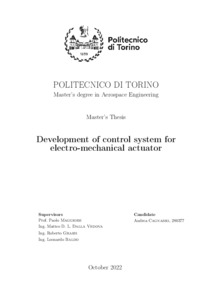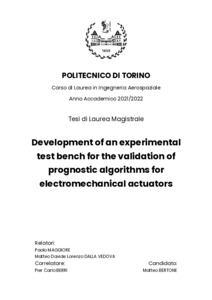 Development of an experimental test bench for the validation of prognostic algorithms for electromechanical actuators.