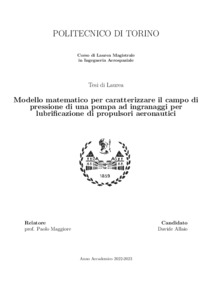 Modello matematico per caratterizzare il campo di pressione di una pompa ad ingranaggi per lubrificazione di propulsori aeronautici = Mathematical model to characterize the pressure field of a gear pump for aircraft engine lubrication.