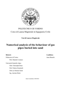 Numerical analysis of the behaviour of gas pipes buried into sand.