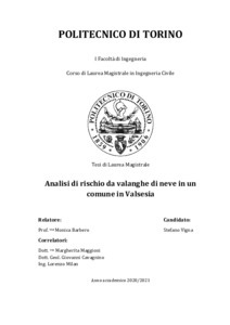ANALISI DI RISCHIO DA VALANGHE DI NEVE IN UN COMUNE IN VAL SESIA = RISK ANALYSIS FROM SNOW AVALANCHE IN A MUNICIPALITY IN VAL SESIA.