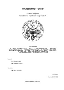 POTENZIAMENTO ACQUEDOTTISTICO DI UN COMUNE MONTANO CON PREDISPOSIZIONE A FUTURO UTILIZZO PLURIMO A SCOPO IDROELETTRICO = IMPROVEMENT OF AQUEDUCT SYSTEMS IN A MOUNTAIN MUNICIPALITY WITH PREDISPOSITION FOR FUTURE MULTIPLE USE FOR HYDROELECTRIC PURPOSES.