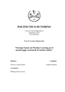 Strategie basate su Machine Learning per il monitoraggio strutturale di turbine eoliche = Machine Learning based strategies for wind turbines structural monitoring.