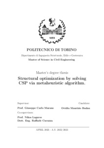 Structural optimization by solving CSP via metaheuristic algorithm.