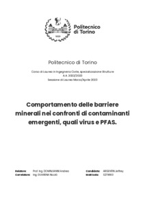Comportamento delle barriere minerali nei confronti di contaminanti emergenti, quali virus e PFAS = Behavior of mineral barriers against emerging contaminants, such as viruses and PFAS.