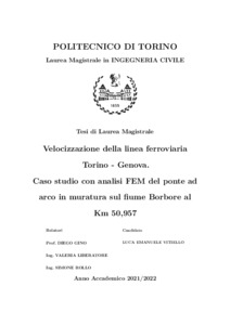 Velocizzazione della linea ferroviaria Torino - Genova. Caso studio con analisi FEM del ponte ad arco in muratura sul fiume Borbore al km 50,957 = Speeding up process of the railway line Torino-Genova. Case study with FEM analysis of the masonry arch bridge over the Borbore river at km 50,957.