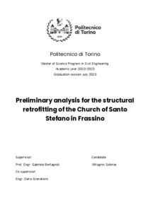 Preliminary analysis for the structural retrofitting of the Church of St. Stefano in Frassino.