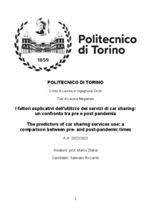 I fattori esplicativi dell'utilizzo dei servizi di car sharing: un confronto tra pre e post pandemia = The predictors of car sharing services use: a comparison between pre- and post-pandemic times.