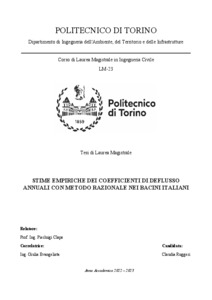 Rel. Pierluigi Claps, Giulia Evangelista. Politecnico di Torino, Corso di laurea magistrale in Ingegneria Civile, 2023