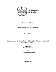 Dynamic analysis of crack growth using sub-parametric eXtended finite element method.