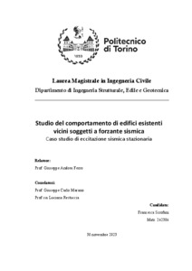 Studio del comportamento di edifici esistenti vicini soggetti a forzante sismica. Caso studio di eccitazione sismica stazionaria = The behavior of adjacent existing buildings under earthquake. Case study of stationary seismic excitation.