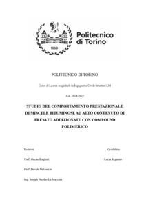 Studio del comportamento prestazionale di miscele bituminose ad alto contenuto di fresato addizionate con compound polimerico = Experimental study on performance characteristics of asphalt mixtures with high content of reclaimed asphalt and polymer compound.