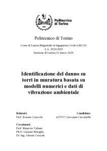 Identificazione del danno su torri in muratura basata su modelli numerici e dati di vibrazione ambientale = Damage identification in masonry towers based on numerical models and ambient vibration data.