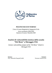 Analisi di vulnerabilità sismica della scuola “Del Bene” a Maruggio (TA) = Seismic vulnerability analysis of the “Del Bene” School in Maruggio (TA).