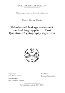 Side-channel leakage assessment methodology applied to Post Quantum Cryptography algorithm.
