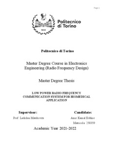 Rel. Alberto Tibaldi, Federica Cappelluti, Matteo Cagnoni. Politecnico di Torino, Corso di laurea magistrale in Ingegneria Elettronica (Electronic Engineering), 2022