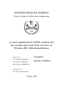 A novel miniaturised CMOS architecture for on-chip data and clock recovery in Wireless RF ASK-demodulators.