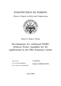 Development of a wideband MMIC Doherty Power Amplifier for 5G applications in the FR1 frequency bands.