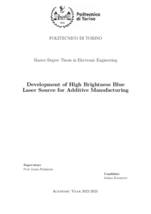 Development of High Brightness Blue Laser source for additive manufacturing.