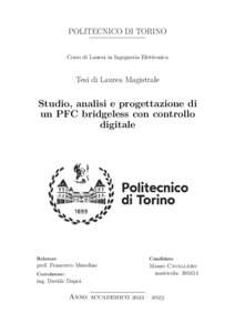 Studio, analisi e progettazione di un PFC Bridgeless con controllo digitale = Study, analysis and design of a Bridgeless PFC with digital control.