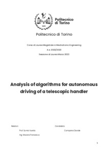 Analysis of algorithms for autonomous driving of a telescopic handler.