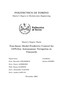 Non-linear Model Predictive Control for GPS-free Autonomous Navigation in Vineyards.
