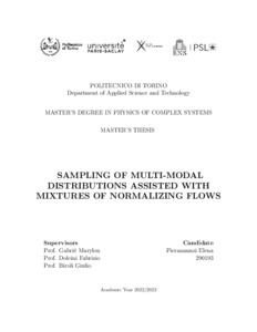 Sampling of multi-modal distributions assisted with mixtures of normalizing flows.