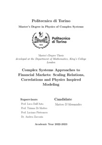Rel. Luca Dall'Asta, Tiziana Di Matteo, Andrea Zaccaria, Luciano Pietronero. Politecnico di Torino, Corso di laurea magistrale in Physics Of Complex Systems (Fisica Dei Sistemi Complessi), 2023