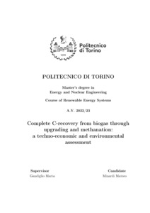 Rel. Davide Papurello. Politecnico di Torino, Corso di laurea magistrale in Ingegneria Energetica E Nucleare, 2023