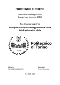 Cost optimal analysis for energy renovation of old buildings in northern Italy.