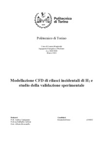 Modellazione CFD di rilasci incidentali di H2 e studio della validazione sperimentale = CFD Modeling of accidental H2 releases and study of experimental validation.