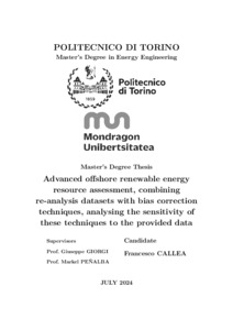 Advanced offshore renewable energy resource assessment, combining re-analysis datasets with bias correction techniques and satellite data, analysing the sensitivity of these techniques to the provided data.