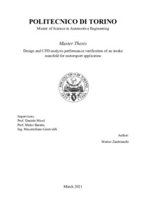 Progetto e verifica prestazionale del cassoncino di aspirazione di un motore da competizione mediante analisi CFD = Design and CFD analysis performance evaluations of an intake manifold for motorsport application.