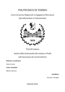Rel. Andrea Tonoli. Politecnico di Torino, Corso di laurea magistrale in Automotive Engineering (Ingegneria Dell'Autoveicolo), 2021