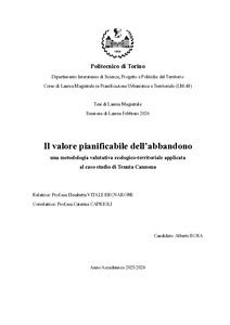 Il valore pianificabile dell'abbandono: una metodologia valutativa ecologico-territoriale applicata al caso studio di Tenuta Cannona = The plan-eligible value of abandonment: an ecological–territorial evaluation methodology applied to the Tenuta Cannona case study.