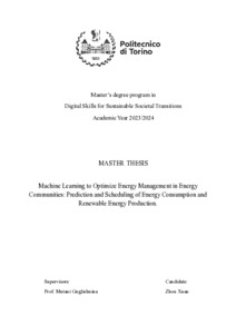 Machine Learning to Optimize Energy Management in Energy Communities: Prediction and Scheduling of Energy Consumption and Renewable Energy Production.