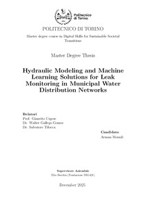 Hydraulic Modelling and Machine Learning Solutions for Leak Monitoring in Municipal Water Distribution Networks.