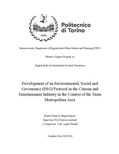 Sviluppo di un protocollo Ambientale, Sociale e di Governance (ESG) per l’industria del cinema e dell’intrattenimento nel contesto dell’area metropolitana di Torino = Development of an Environmental, Social and Governance (ESG) Protocol in the Cinema and Entertainment Industry in the Context of the Turin Metropolitan Area.