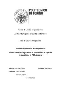 Materiali cementizi auto-riparanti: Valutazione dell’efficienza di riparazione di capsule cementizie e in PET riciclato = Self-healing cementitious materials: Evaluation of the healing efficiency of cementitious and recycled PET capsules.