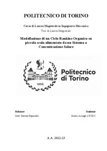 Modellazione di un Ciclo Rankine Organico su piccola scala alimentato da un Sistema a Concentrazione Solare = Modeling of a small-scale Organic Rankine Cycle powered by a Concentrated Solar System.